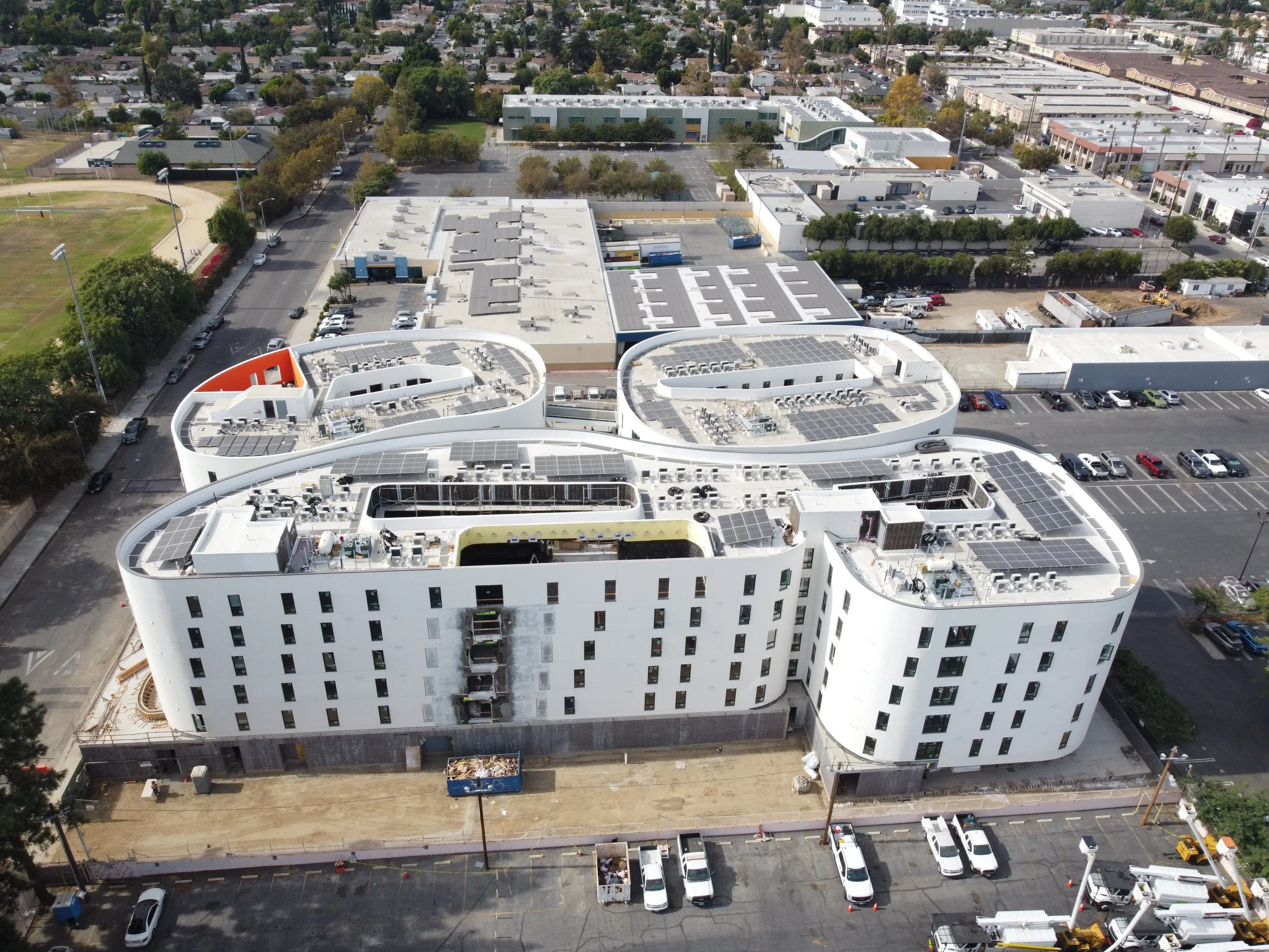 Corazón del Valle (CDV) is named for its location in the heart of the San Fernando Valley, CDV provides homes for 176 households across two phases. Half of the units are designated as permanent supportive housing, while the remainder are general affordable units. The community also includes a neighborhood clinic, operated by the San Fernando Community Health Center, which will serve both residents and the surrounding community.